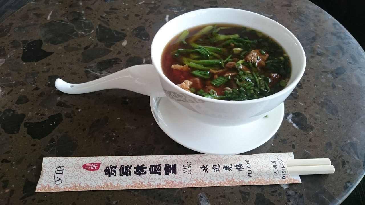 食事の変わりに、到着前に温かいお茶をいただき、北京に到着!