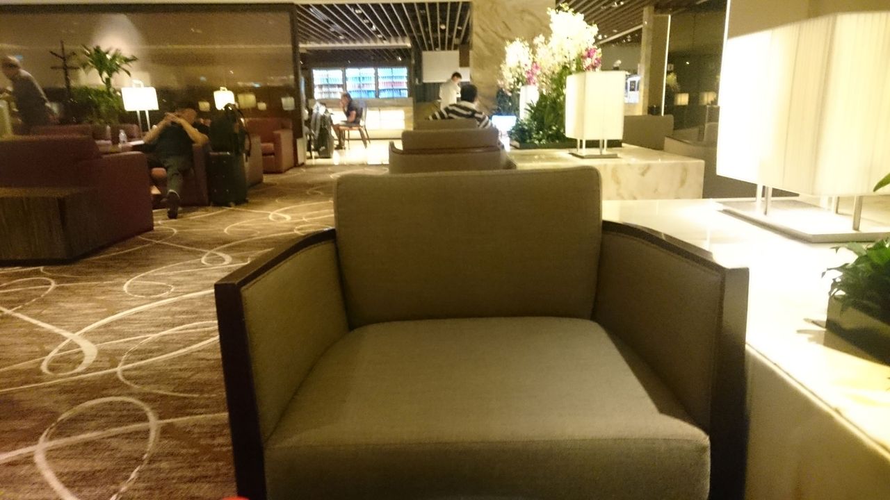 入口で搭乗券を見せると、入って右手のラウンジに案内されます。まったく違い、ガヤガヤ感はなく、寛げます!