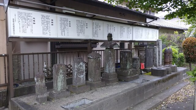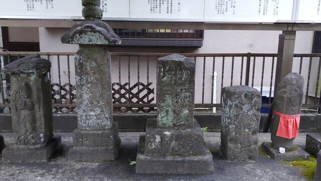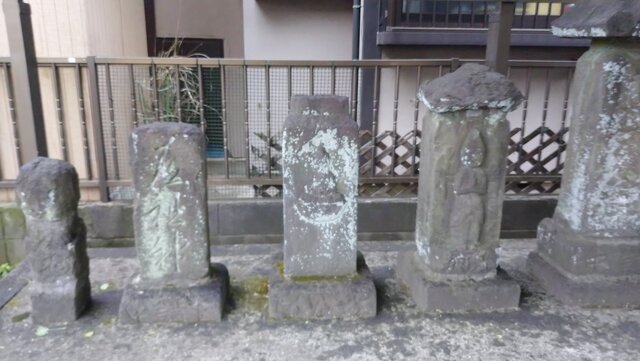 参道には、光専神、道祖神、日待塔、庚申塔2基、地神塔、庚申塔、地蔵菩薩、鳥居跡記念碑と台座・