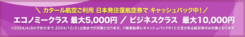 エコノミークラス最大5,000円、ビジネスクラス最大10,000円キャッシュバック!