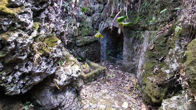 琉球石灰岩の石垣に囲まれた神秘的な雰囲気。